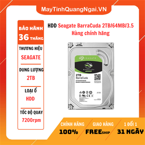 Ổ gắn trong Seagate BarraCuda HDD được bảo hành 3 năm, 1 đổi 1 trong vòng 10 phút, tại hệ thống Trung tâm bảo hành SeaCare Center: